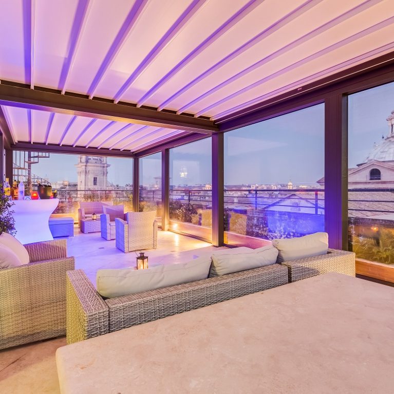 Grazie a spazi ampi e confortevoli, dotati di ogni servizio, questa terrazza è la location perfetta per donare a ogni evento uno sfondo di incredibile impatto visivo e dall’atmosfera carica di fascino. La visuale a 360° del rooftop abbraccia Roma dall’alto e offre una vista privilegiata della città.